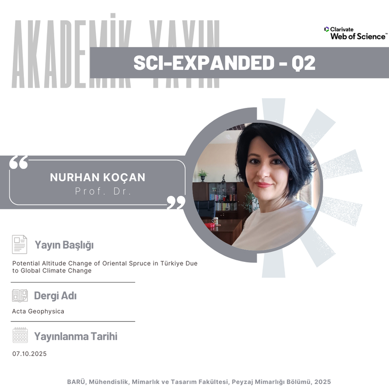Our department faculty member, Prof. Dr. Nurhan KOÇAN, has had her study titled “Potential Altitude Change of Oriental Spruce in Türkiye Due to Global Climate Change” published in the journal Acta Geophysica.
