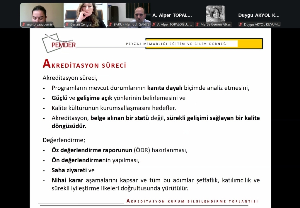 Our department's accreditation process was supported by our department head, Prof. Dr. Canan Cengiz, and Prof. Dr. Sebahat Açıksöz, along with our Faculty Secretary, Memduh Şahin, who attended an Institutional Information Meeting organized by the PEMDER Accreditation Board. Our faculty member, Assoc. Prof. Dr. Mustafa Artar, also gave a presentation at the meeting, where experiences regarding the accreditation process we will be applying for in 2026 were shared. We thank our professors, our faculty secretary, and the PEMDER Accreditation Board for their participation in the meeting.